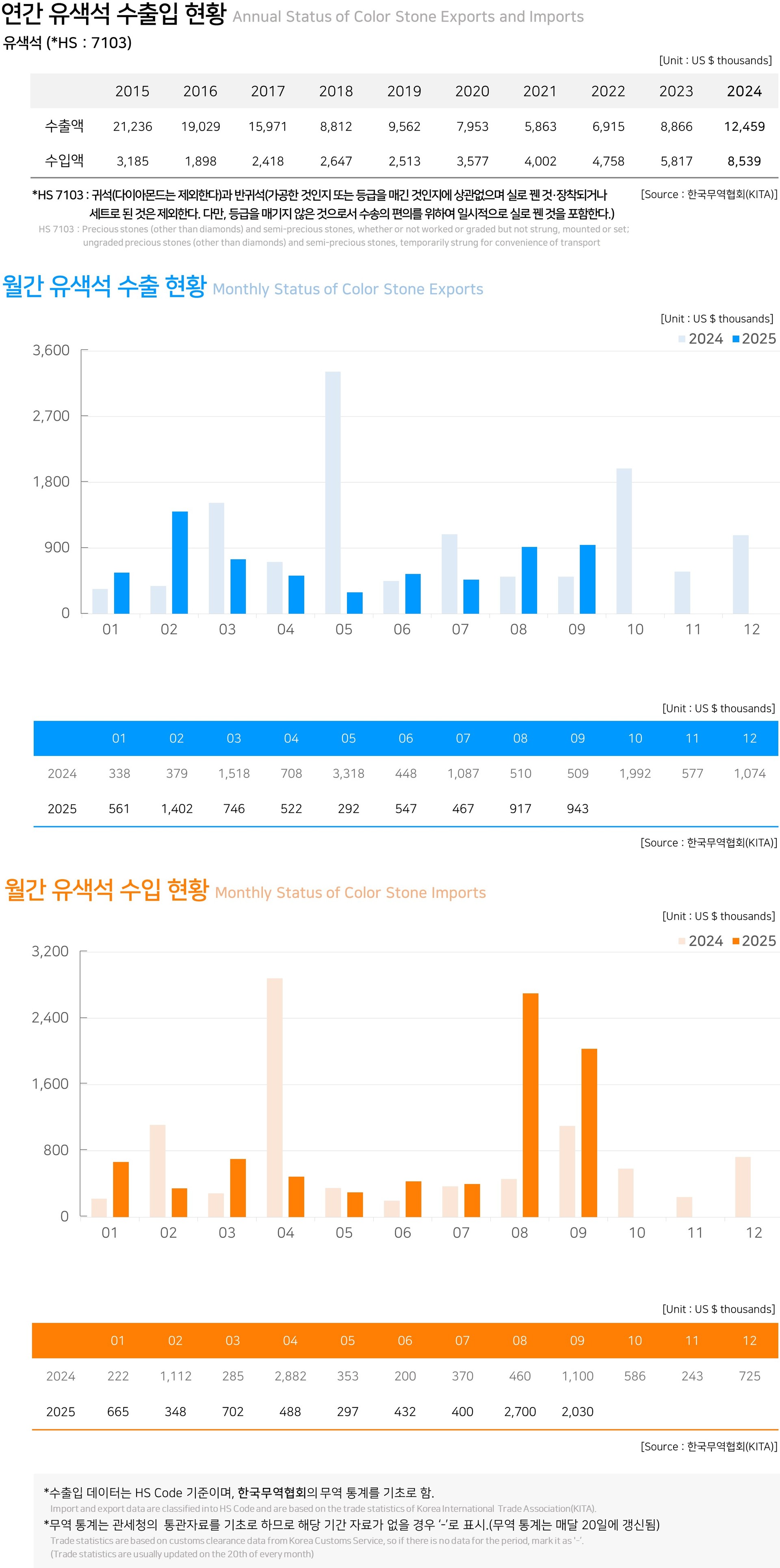 매월 제공되는 HS 코드로 분류된 수출입 실적에 따라 주얼리 관련 자료인