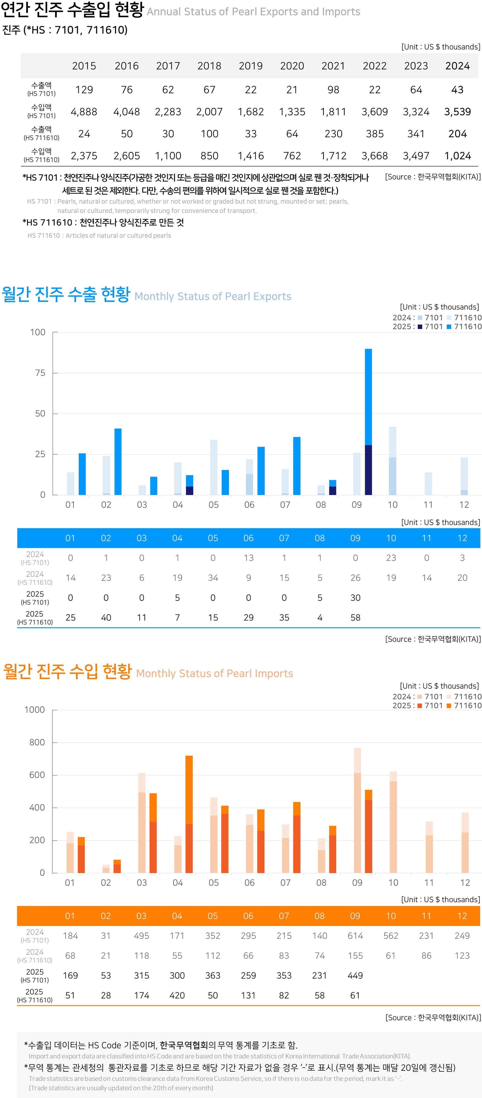 매월 제공되는 HS 코드로 분류된 수출입 실적에 따라 주얼리 관련 자료인