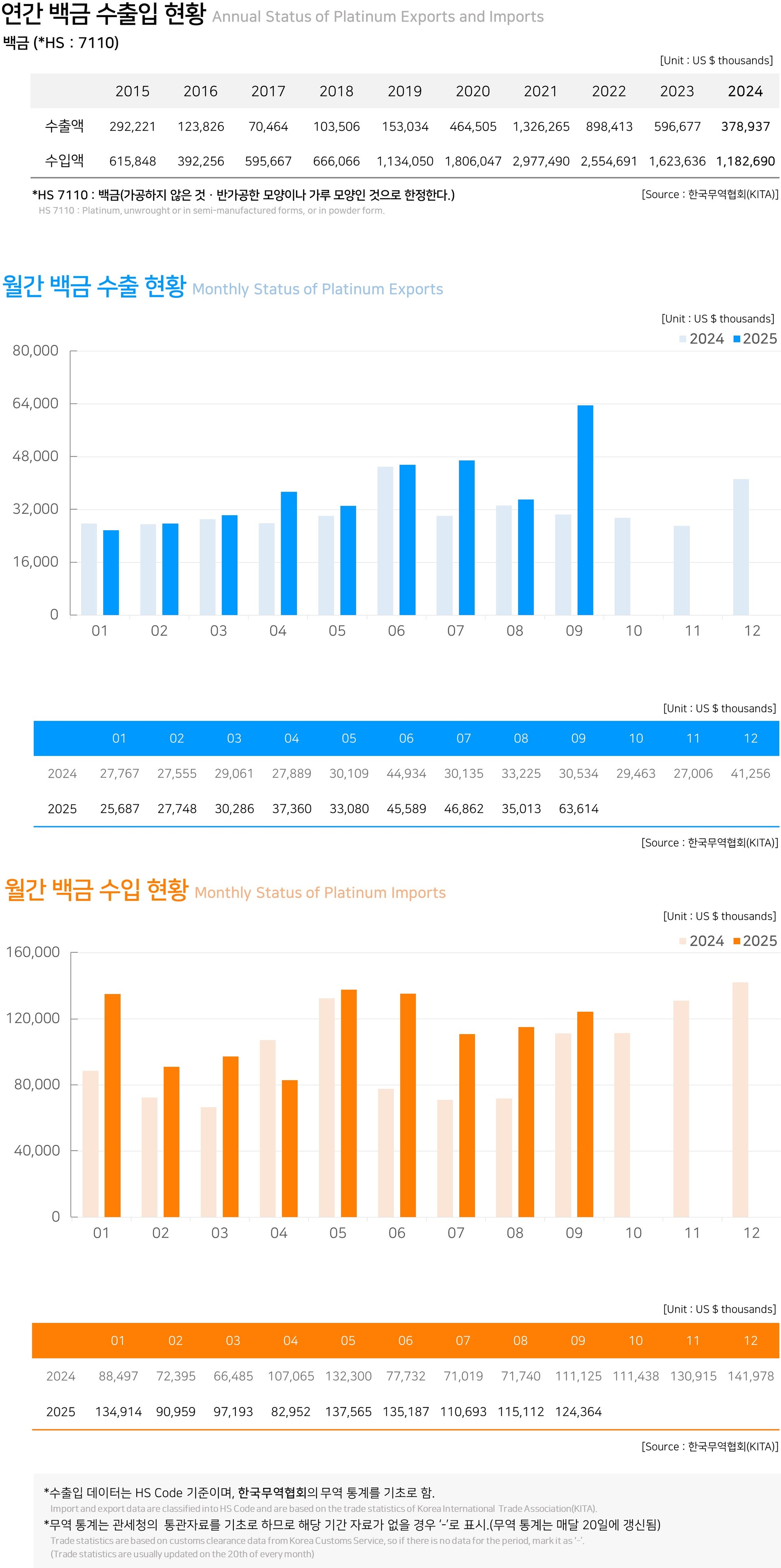 매월 제공되는 HS 코드로 분류된 수출입 실적에 따라 주얼리 관련 자료인