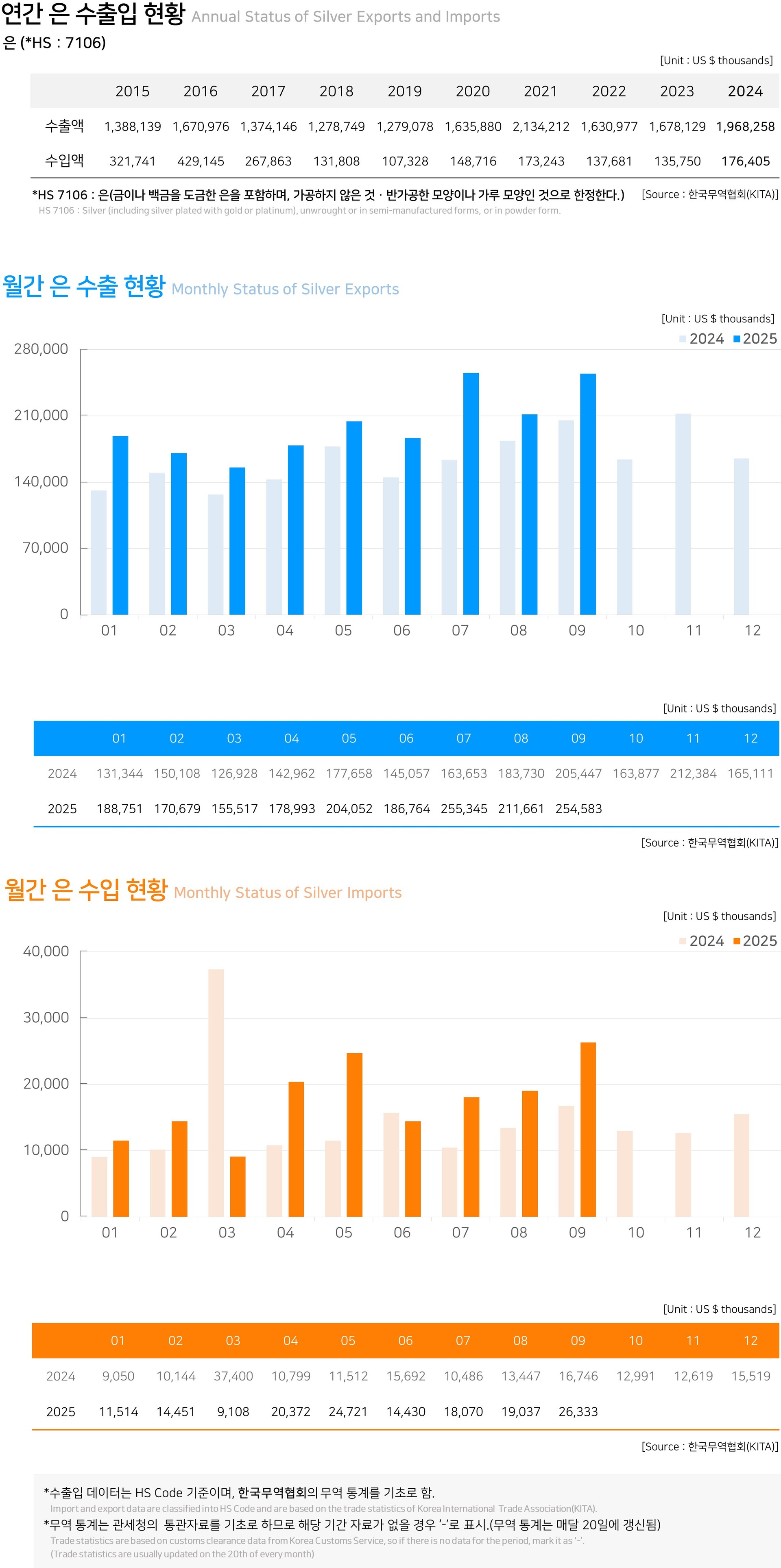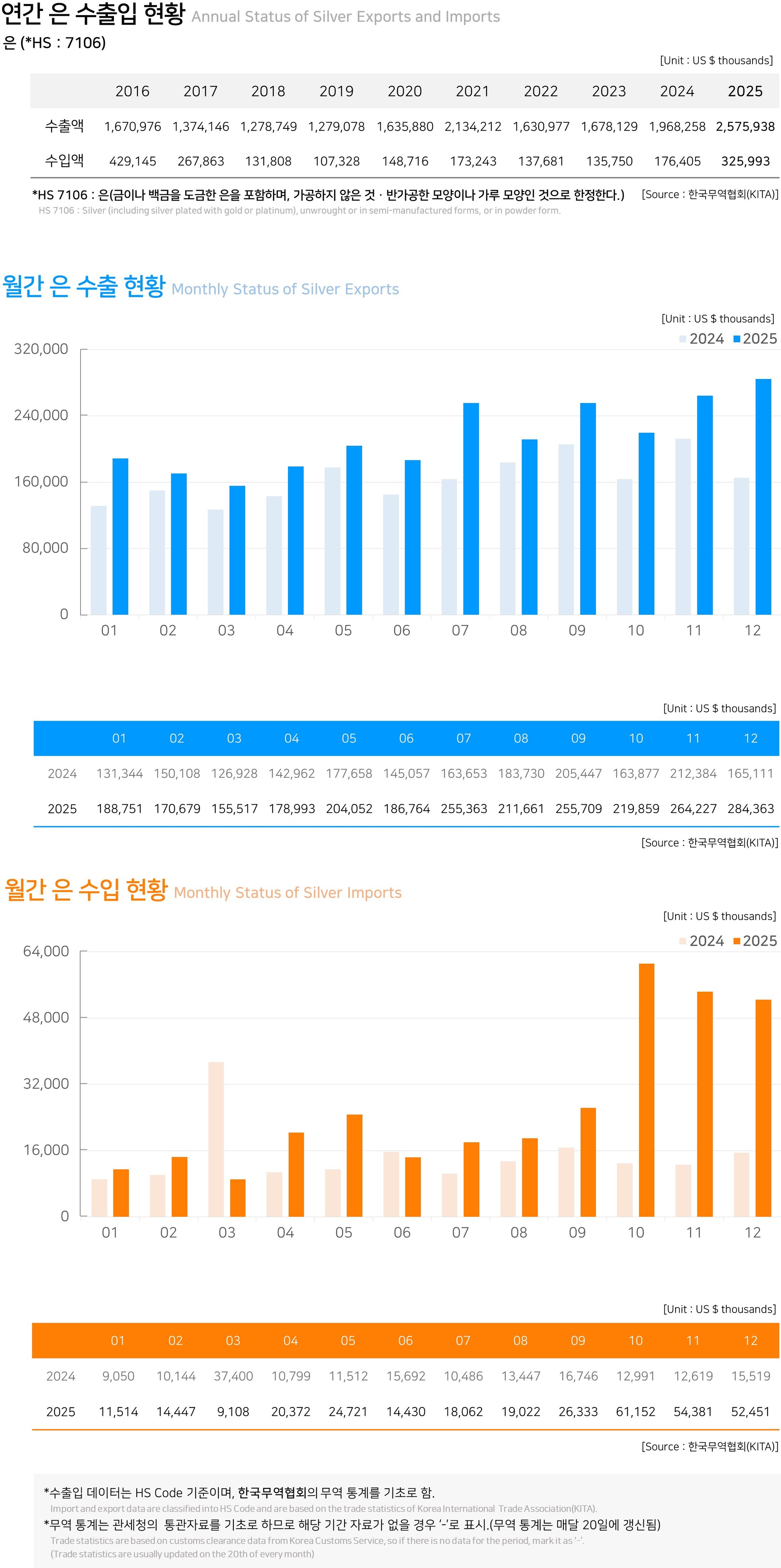 매월 제공되는 HS 코드로 분류된 수출입 실적에 따라 주얼리 관련 자료인