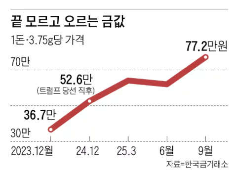 - 한 돈 77만원, 치솟는 금값에 직격탄