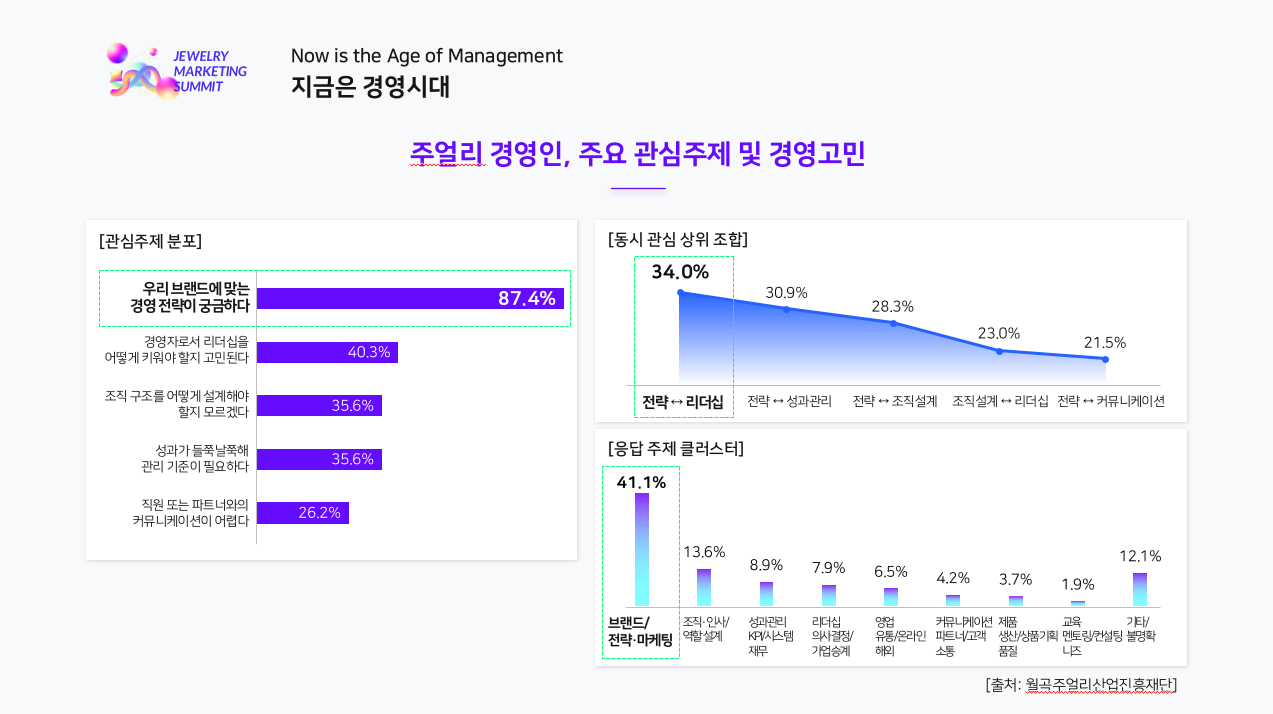 하지만 ‘주얼리 마케팅 서밋 Vol.2’의 심층토크 현장은 조금 달랐습니다. 단순한 질의응답을 넘어, 참가자들의 실제 질문을 분석하고, 그 질문에 전문 경영 컨설턴트가 직접 구조적 해답을 제시하는 방식으로 진행되었습니다.