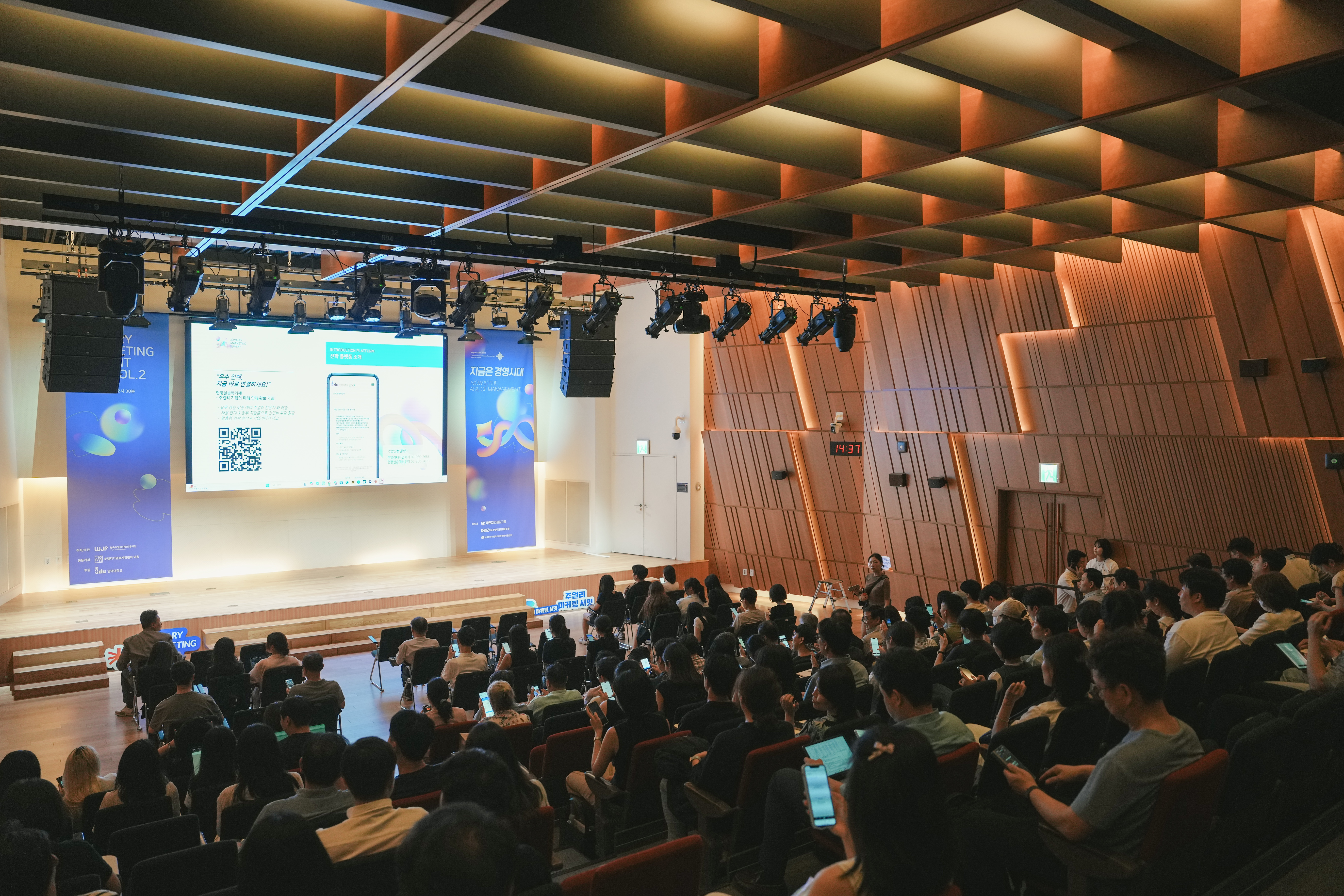 생각보다 솔직한 결과가 나왔다는 반응도 있었고, 동료와 결과를 비교하며 고개를 끄덕이는 모습도 인상적이었습니다. 이 시간은 단지 재미있는 테스트를 위한 시간이 아니었습니다. 오늘 서밋이 왜 ‘경영’을 이야기하는지, 그리고 이후 강연과 토크에서 얻은 인사이트를 어떻게 실행으로 옮길 수 있을지를 미리 준비하는 시간이었습니다.