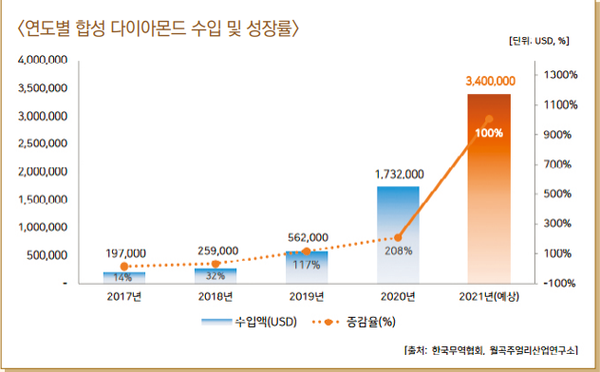 현재 같은 가격으로 합성다이아몬드는 네 배 더 큰 크기를 제공하며, 이는 제조 기술 발전 덕분이다. 올해 말에는 여섯 배 더 큰 합성 제품을 구매할 수 있을 것으로 예상된다. 이에 따라 천연 다이아몬드의 가격은 계속 하락 중이다. 특히 국제 금값이 사상 최고치를 기록한 것과 달리, 다이아몬드는 정반대의 흐름을 보이고 있다. 미국의 천연 다이아몬드 수입량도 최근 몇 년간 크게 줄었다. 업계 전문가들은 합성 제품의 수요 증가를 예측하지만, 일부는 전체 시장이 축소될 가능성도 언급했다.